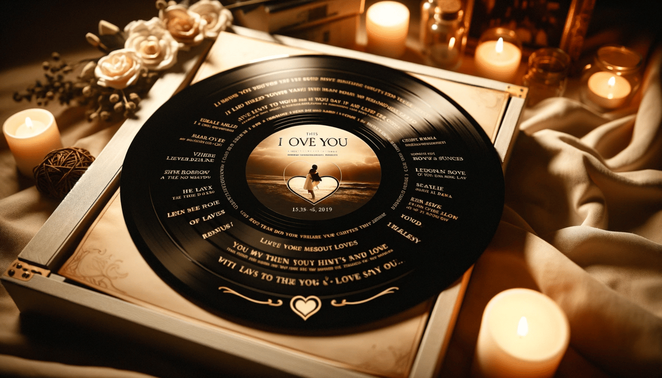 Each of these songs holds a special memory and meaning to our relationship, from our first dance to the song that was playing when we first said "I love you." This personalized vinyl record is a timeless way to relive those precious moments and celebrate our love every time we listen.