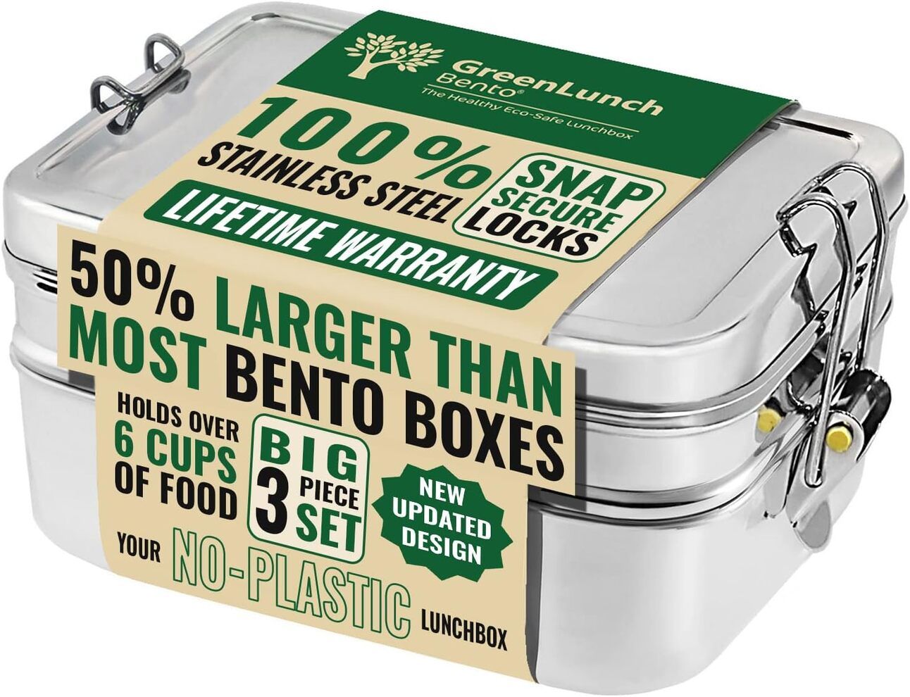 Check out the 3-in-1 Stainless Steel Bento Box. This isn’t your average lunchbox; it’s a sturdy, eco-friendly container made for grown-ups. It’s tough against cracks, so it lasts longer, and it’s got enough room to hold 6 cups of food – that’s 50% more than your typical metal bento box.